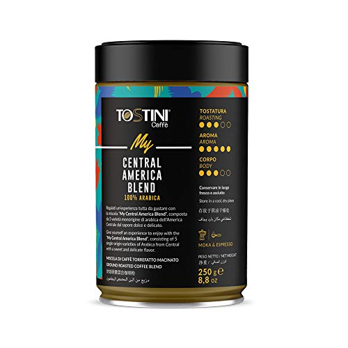 Tostini Caffè gemahlener Kaffee My Central America Blend zu 500 g | Caffè Americano | gemahlener Kaffee, bestehend aus 5 herkunftsreinen Arabica-Sorten aus Mittelamerika | Mokka-Kaffee | Made In Italy