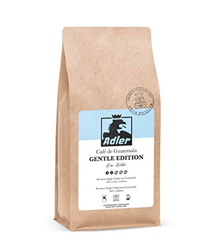 Die Gentle Publikation von Adler Kaffee. Ein milder Junggeselle Origin Arabica Jeder Guatemala. Du kannst dich jeden Morgen auf einen süßen Kaffee mit samtigem Körper und massenhaft Schokoladenaroma freuen, der durch eine feine Orangennote eine aufregende Komplexität erhält.