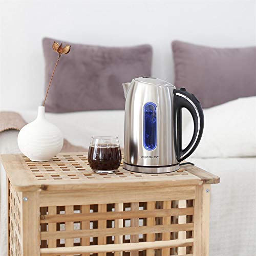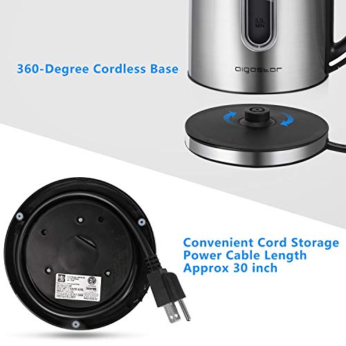 Aigostar Wasserkocher Edelstahl 1,7 Liter – Elektrischer Wasserkocher kabellos mit LED Beleuchtung Wasserstandsanzeige, 2200 Watt Schnelles Kochen, kalkfilter, BPA-frei, Auto-off & Trockenlaufschutz