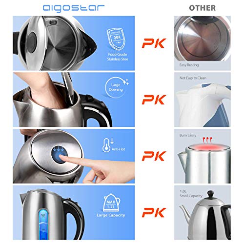 【Große Kapazität und schnelles Kochen】 1.7 Große Kapazität erfüllt Ihren täglichen Wasserbedarf, Einzeln große Öffnung für einfaches Befüllen. 2200-Watt hohe Leistung kocht Wasser schnell und effizient und spart en masse Zeit für Sie.