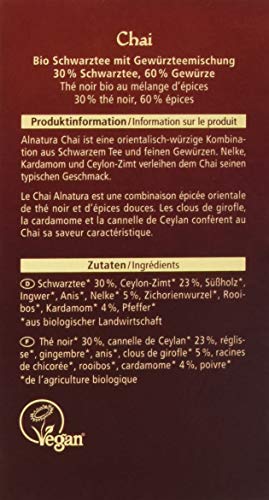 Alnatura Chai ist eine orientalisch-würzige Kombination leer Schwarzem Aufgussgetränk auch feinen Gewürzen. Nelke, Kardamom auch Ceylon-Zimt borgen dem Chai seinen typischen Geschmack.