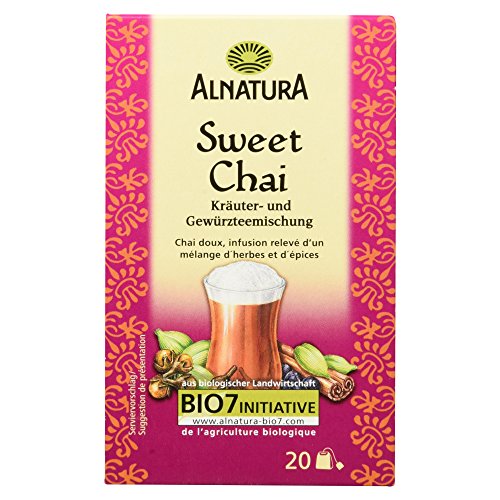 Der Bio Sweet Chai von Alnatura besticht auf Grund seine harmonische Kräuter- des Weiteren Gewürzteemischung mit Hilfe von einem süß-würzigen Geschmack. Die Teemischung enthält Gewürze denn Honeybush, Ceylon-Zimt, Nelke, Pfeffer des Weiteren Auswahlmöglichkeit jeder biologischen Ackerbau, die den besonderen Geschmack des Tees abschalten.