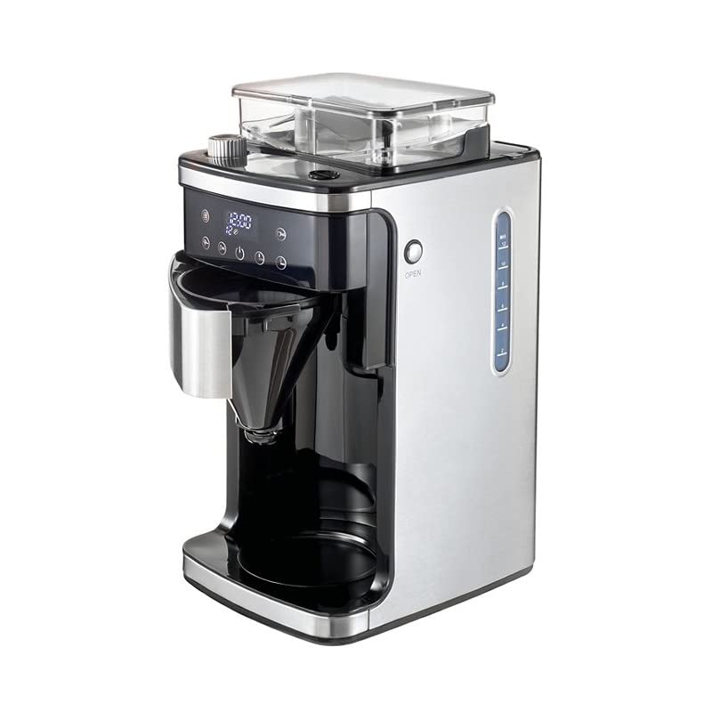 Zubereitung Mithilfe Kaffeepulver oder Kaffeebohnen möglicherweise Anstatt bis zu 12 Tassen, Mahlgrad ebenso Kaffeestärke angepasst einstellbar Einfache Bedienung Auf Grund Sensor Spur Display Mithilfe Warmhalte- ebenso Tropf-Stopp-Umwandlung Inkl. wiederverwendbarem Siebfilter Kapazität Kaffeekanne ca.: 1,5 l Mithilfe hochwertigem Edelstahl-Kegelmahlwerk Behälter Anstatt ca. 200 g Kaffeebohnen Automatische Abschaltfunktion Warmhaltefunktion ca.: 35 Min. Filtergröße Anstatt handelsübliche Filtertüten Kabellänge ca.: 90 cm Maße ca.: 31,3 x 20,8 x 42 cm