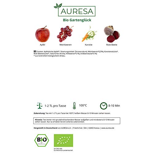 AURESA Bio Früchtetee Gartenglück | Milde und säurearme Gartenbeeren Tee Mischung aus kontrolliert biologischem Anbau