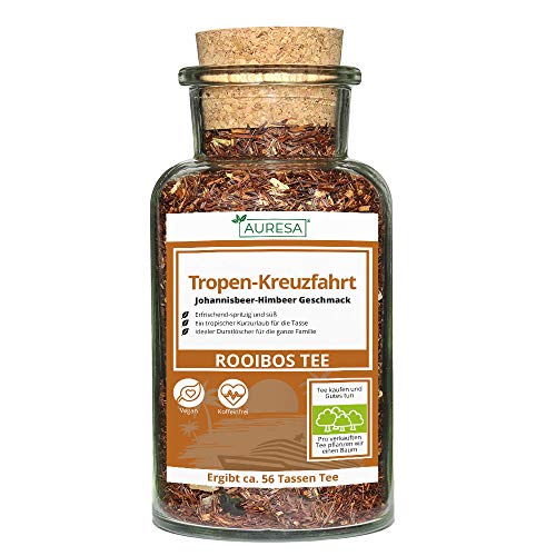 AURESA Rooibos Tee im Glas | Loser Rotbusch Tropen-Kreuzfahrt – 90g | Wiederverwendbare Glasflasche mit Korkverschluss