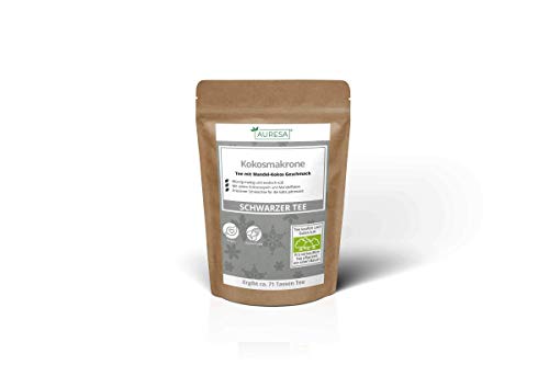 AURESA Schwarztee Kokosmakrone | Gehaltvolle Schwarzteemischung mit Mandel-Kokos-Geschmack | Ein wunderbarer Tee