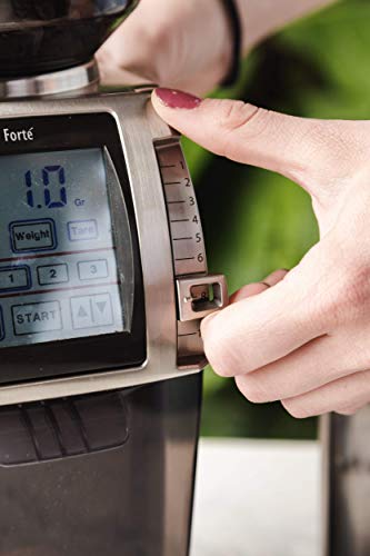 Die Baratza Forté AP Kaffeemühle enthält Vermischtes Funktionen, die alias für den kommerziellen Betrieb im Rahmen sind. So benötigt sie einen geringen Platzbedarf, weist ein intuitives Bedienfeld auf und verfügt über eine solide Marko-/Mikroverstellung. Diese ermöglicht es die Zeit oder das Gewicht einzustellen. Eine zusätzliche und nützliche rechtseindeutige Relation, ist die Möglichkeit eine gewichtsorientierte Dosierung für Espresso vorzunehmen. Zumal ist die Dosierung auf plus/abzgl. 0,2 Gramm prägnant. Der Touchscreen ist zudem einfach in der Bedienbarkeit. Aktiviert wird der Bildschirm mit LED Hintergrundbeleuchtung durch Berührung des Bildschirms. Über den Touchscreen lassen sich das Gewicht, die Dosierung und die Zeit steuern. Auf und Ab Pfeile verhelfen die Dosierungswerte zu erhöhen oder zu reduzieren. Über Fahrtbeginn und Stop lässt sich Mahlprozess starten oder beenden