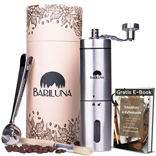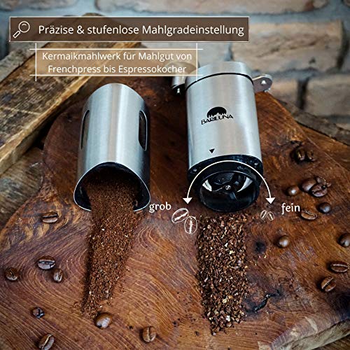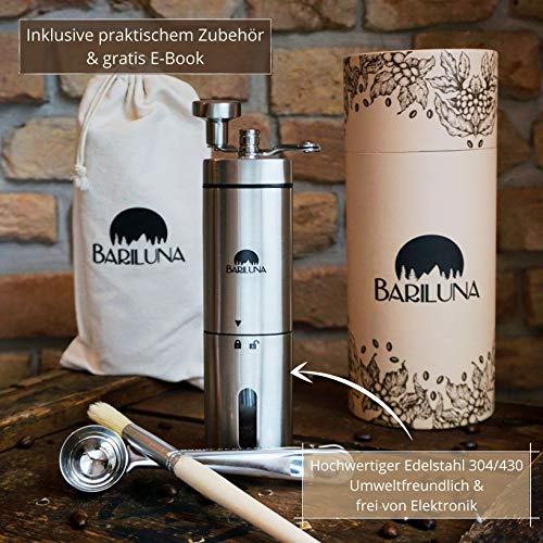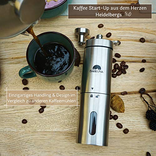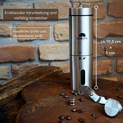 BARILUNA® Premium Kaffeemühle, manuell mit Keramikmahlwerk | Kaffeemühle Hand | Handkaffeemühle aus wertigem Edelstahl…