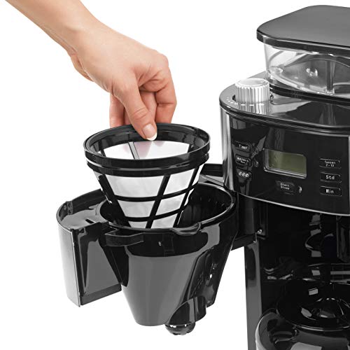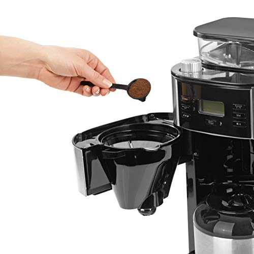 EINFACHE BEDIENUNG: Dank des übersichtlichen Menüs, ist die Kaffeemaschine enorm einfach in der Handhabung. Die Timerfunktion, als bekannt als der Mahlgrad ist per Tastendruck einstellbar.