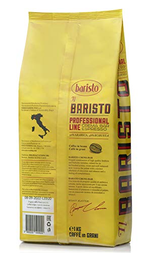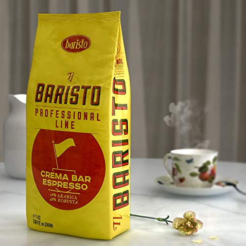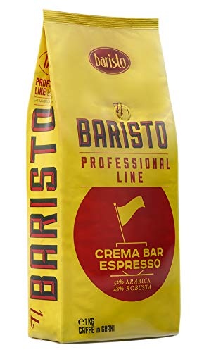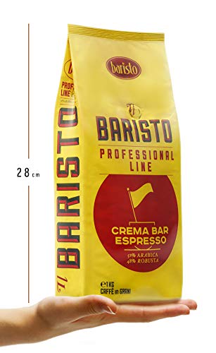 Baristo Crema Bar Italien Espresso bohnen. Hergestellt in Italien. Er trägt den Geist des klassischen italienischen Espressos. Eine Kombination hochwertiger Sorten von Arabica und Robusta, die für ihr reiches Aroma, ihren süßen und ausgewogenen Geschmack geschätzt werden.