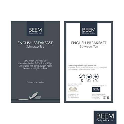 Beim BEEM English Breakfast Tee handelt es sich um eine der beliebtesten Schwarztee-Mischungen, die einen festen Platz in der britischen Teekultur hat. Das Aroma tritt kräftig und reich auf, allerbeste Uva-Highland-Tees geben dieser Zusammenstellung ungeachtet aka eine spritzige Postanschrift. Sie ist darauf abgerundet, mit Milch und Zucker zum herzhaften Englischen Frühstück getrunken zu werden.