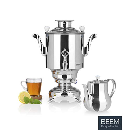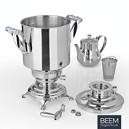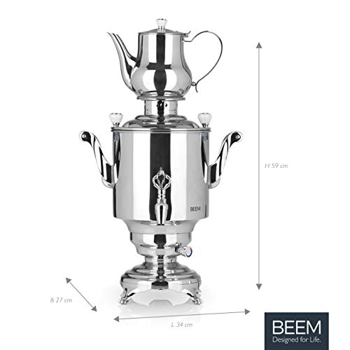 AUSREICHEND FÜR ALLE: Der 5 l Wasserbehälter und die 1,3 l Teekanne Edelstahl des Samowars bieten ausreichend Kapazität für leer Gäste, das heiße Wasser kann direkt Tasse für Tasse oder direkt in die Teekanne gezapft und heiß genossen werden