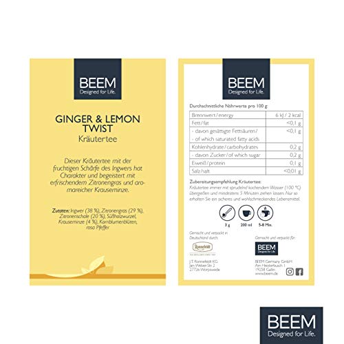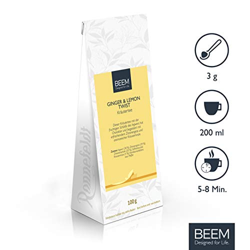 BEEM TEE GINGER & LEMON TWIST Kräutertee – 100 g | Loser Tee | Mit Ingwer, erfrischendem Zitronengras und aromareicher…