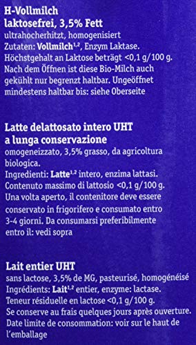 Zutaten: VOLLMILCH*,**, Biokatalysator Laktase. *) Ökozutat zufolge EU ÖKO-VO **) jeder fairem Deal / Fairer Handelsanteil: 99 %