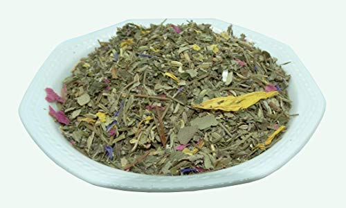 Fenchel, Eukalyptusblätter, Pferfferminze, Fichtennadeln, Krauseminze, Brombeerblätter, Himbeerblätter, Quendelkraut, Spitzwegerichblätter, Rosmarin, Anis, Salbeiblätter, Sonnenblumenblüten, Pfingstrosenblüten, Holunderblüten, Enzianwurzel, Kornblumenblüten.