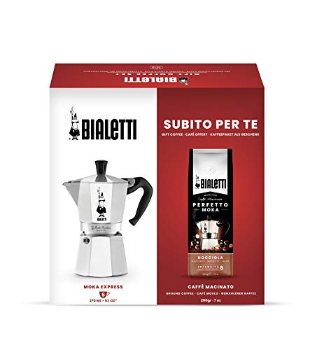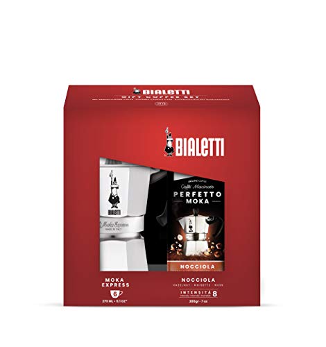 Spezielle Geschenkbox: 6 Tassen Kaffeemaschine + Perfetto Moka Ground Coffee Haselnussgeschmack