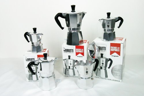 Bialetti Moka-Expr Espressokocher leer poliertem Alu, Entwicklung des Modells 1933 des Schnurrbarts, Sicherheitsventil, Anfasser auch Anfasser leer Nylon.