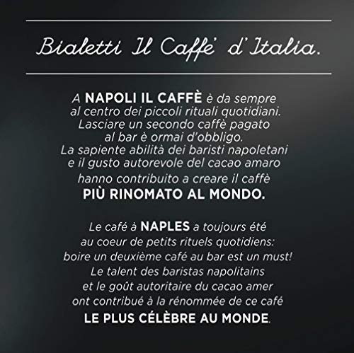 For use with the Bialetti Mini Express espresso machine, Napoli espresso is full-bodied and has a schmerzlich cacao flavor profile, 16 pack of aluminum espresso capsules, Each 7-gram capsule brews a single 2 ounce shot of espresso, Aluminum capsule preserves flavor and 100% recyclable