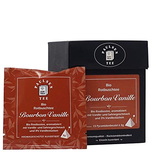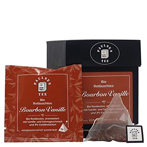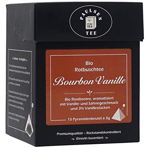 Bio Bourbon Vanille 15 x 3g, einzeln kuvertiert, Paulsen Tee Rotbuschtee im Pyramidenbeutel – Bio, rückstandskontrolliert & zertifiziert