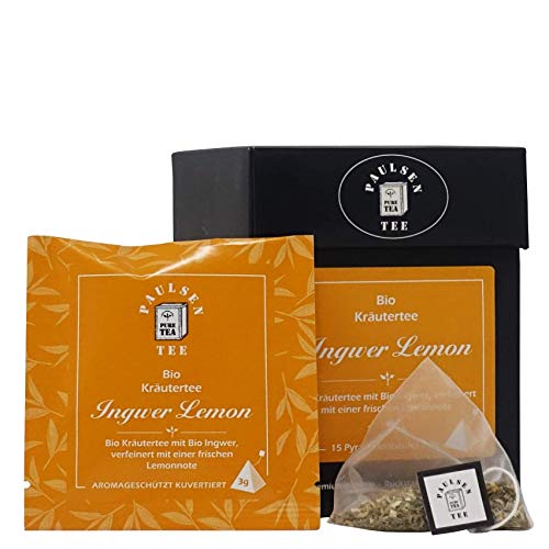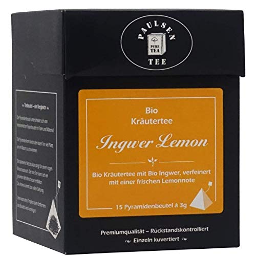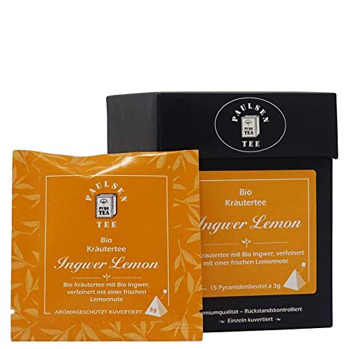 Bio Ingwer Lemon 15 x 3g (155,33 Euro/kg) Paulsen Tee Kräutertee im Pyramidenbeutel – Bio, rückstandskontrolliert…