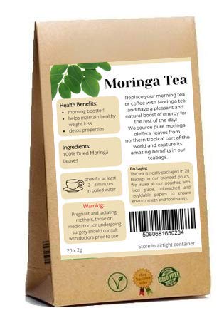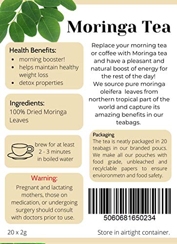 Bio Moringa Blatt Tee | 100 koffeinfreie Teebeutel | Reiner Kräutertee aus den Tropen Sri Lankas