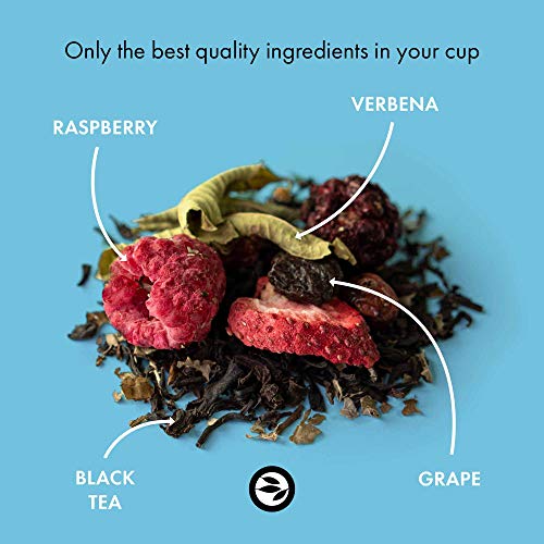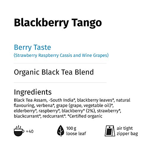 Schwarzer Tee Assam*, -Südindien*, Brombeerblätter*, natürliches Aroma, Verbene*, Weinbeere (Weinbeere, pflanzl. Öl)*, Holunderbeere*, Himbeere*, Brombeere (2%)*, Ananas*, schwarze Johannisbeere*, rote Johannisbeere*. *Sämtliche kontrolliert biologischem Agrar
