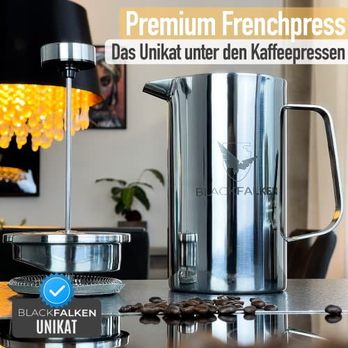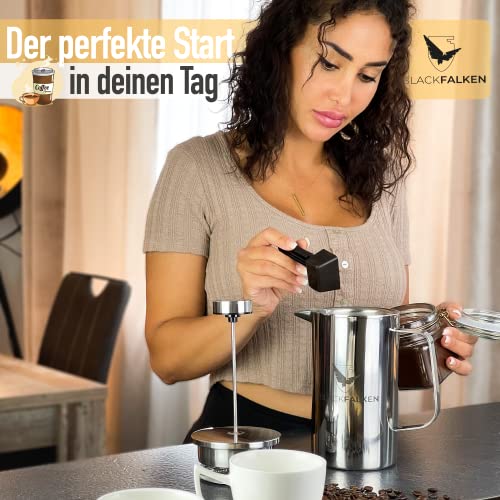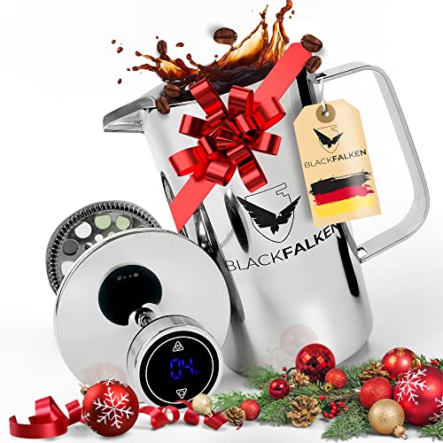 BLACKFALKEN French Press mit digitalem Zeitmesser & Qualitätsfilter | 1 Liter | Kaffeebereiter Edelstahl | French Press…