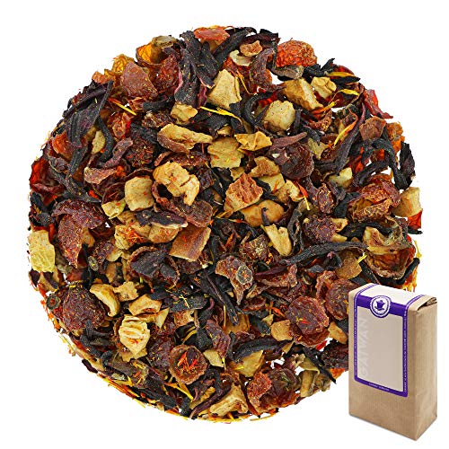 𝗭𝘂𝘁𝗮𝘁𝗲𝗻: Hagebuttenschalen, Apfelstücke, Hibiskus, Färberdistel, Wohlgeruch.