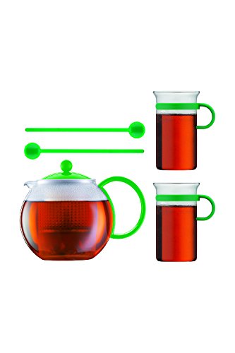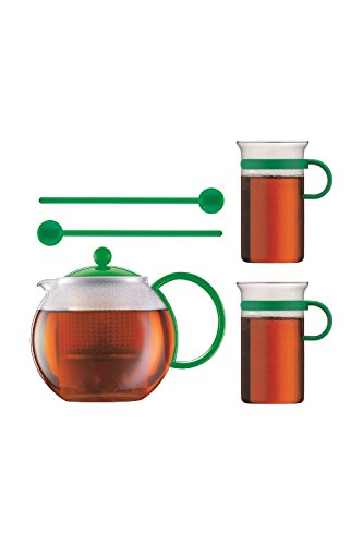 Bodum ASSAM SET Teebereiter Grün mit 2 Gläser und Löffel AK1844-XY-70-6
