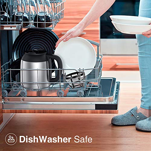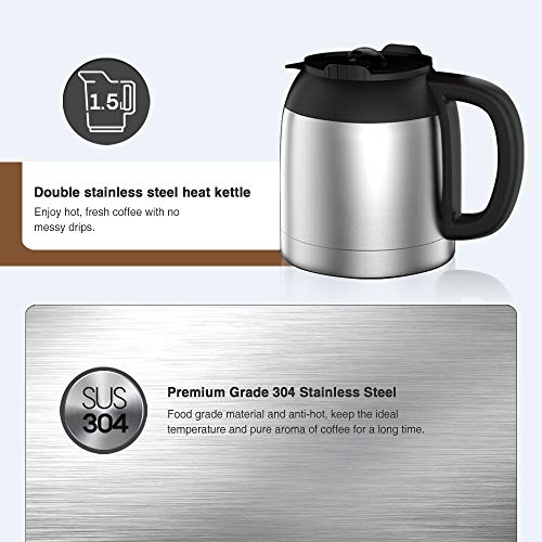 ☕10 Tassen Edelstahl Thermoskanne: Diese Filterkaffeemaschine enthält eine SUS 304-Edelstahl-Thermosflasche, in der 10 bis 12 Tassen Kaffee oder Wasser für die meisten Familienbedürfnisse aufbewahrt werden können. Im Gegensatz zu Glasflaschen hält die Edelstahlthermosflasche die Temperatur der Flüssigkeit in der Flasche lange Zeit aufrecht.