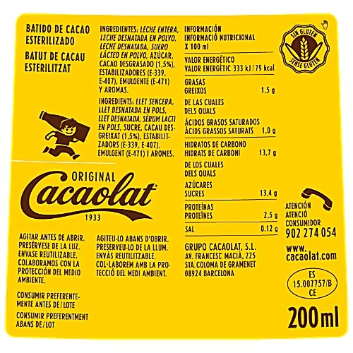 Cacaolat ist ein Kakaogetränk via langjähriger Tradition ferner einzigartigem Gusto. Seit 1933 wird es im Weltall Barcelona alle dem erlesenem Kakao des Theobroma Kakao Baumes hergestellt.