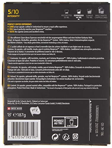 Inhalt: 36 Alu Kapseln, Röstkaffee, gemahlen, für das Nespresso (R)*-Potenzial.