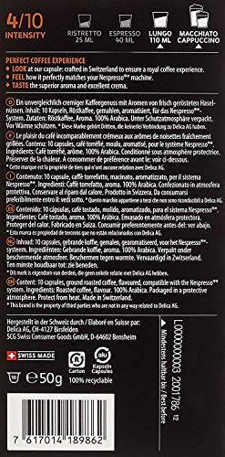 Kapseln geeignet unter Zuhilfenahme von Nespresso Kapselmaschinen: Capri, Citiz, Creation, Cube, Essenza, Inissia, KitchenAid Artisan, Lattissima, Maestria, Nespresso Expert en 350.G, Pixie, Prodigio, Romeo, U, Umilk