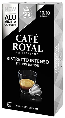 Ihr Ristretto Intenso Strong Druckerzeugnis von Café Royal: Sein temperamentvoller Körper zeichnet diesen Kaffee nicht mehr da und überzeugt hinsichtlich feine Noten von Zartbitterschokolade und Barrique