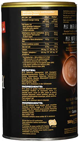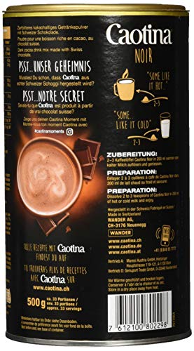 SCHWEIZER QUALITÄT: Eine Dose Caotina Noir enthält 500 g unverwechselbaren Schokoladen-Genuss. Hergestellt im Herzen der Schweiz, in Neuenegg bei Bern