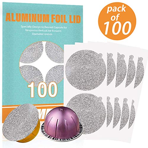 ☀ 【Lieferumfang enthalten】 100 Stückchen VertuoLine-Kaffeepad-Aluminiumfolien (64 mm Durchmesser). * Vertuolinkapseln sind NICHT im Lieferumfang enthalten