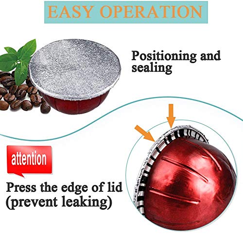 ☀ 【Einfach zu bedienen】 Herumhängen Sie die gebrauchten Vertuolinfolien mit einem kleinen Sciccors. Reinigen und abfüllen Sie Ihren fein gemahlenen Kaffee. Legen Sie die Foliendeckel auf die Felge und drücken Sie sie mit Vorsicht um die Felge, um die Nespresso Vertuo- oder Vertuoplus-Schalen abzudichten.