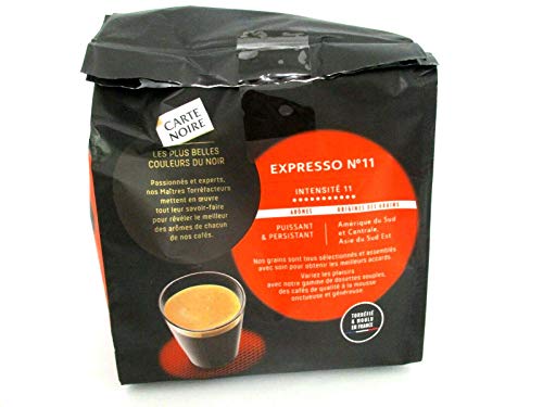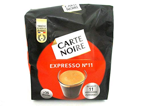 Carte Noir Espresso Kaffeepads 36 Dosettes 250 g Stärke 11 Puissant. Ein tiefschwarzer, kräftiger, voller Kaffee mit köstlich würzigen und pfeffrigen Geschmacksnoten. Trocken und nicht zu warm ablagern. Zutaten: gerösteter, gemahlener Kaffee, abgefüllt in Frankreich darunter Schutzatmosphäre.