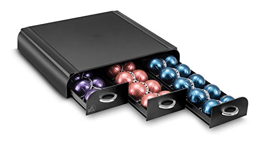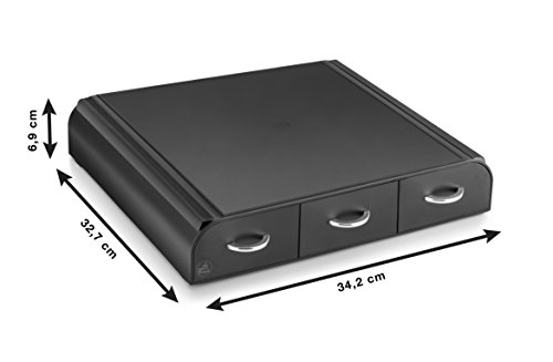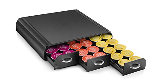 Platzsparende ansonsten formschöne Aufbewahrungslösung Stattdessen Ihre Kaffeekapseln. Unser elegante Abroller steht ohne Umschweife trübselig Ihrer Kaffeemaschine ansonsten hält die Kapseln alle nasenlang griffbereit in 3 Schubladen. Unter Einsatz von verchromten Griffen Enthält bis 42 Dolce Gusto Kapseln Jeglicher 100% recyclebarem Polystyrol Ma-sse : 34,2 x 32,7 H 6,9 cm