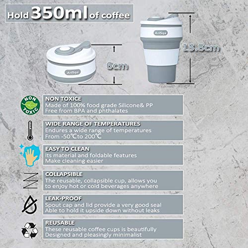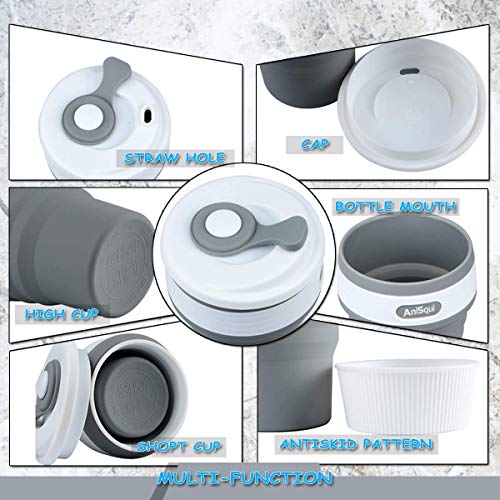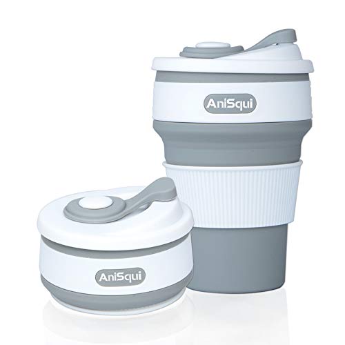 AniSqui coffee to go becher faltbar, (350ml 12oz, 100% Lebensmittelqualität Silikon BPA-frei kaffeebecher faltbar) by (Grau)