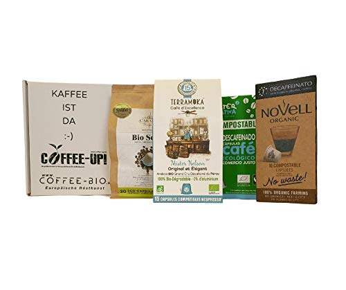 Coffee-Up-Entdeckerpaket: 55 kompostierbare, entkoffeinierte Bio-Kaffeekapseln 4 verschiedene entkoffeinierte Sorten…