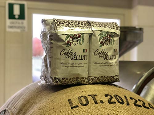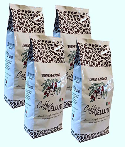 Coffee Velluti Kaffeebohnen Italienische Espresso. 1 kg Wachmacher Caffè espresso italiano in grani artigianale – Gemischter, gerösteter des Weiteren verpackter Wachmacher von Seiten einer kleinen Fabrik in dieser Vertrautheit von Seiten Hauptstadt von Italien. Tostato, miscelato e confezionato da una piccola torrefazione vicino Roma.