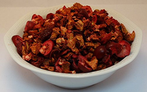 Apfelstücke, Hibiskusblüten, Fliederbeeren, gefr.-getr. Apfelstücke, Hagebuttenschalen, gefr.-getr. Himbeer- darüber hinaus Cranberryscheiben, Aroma.