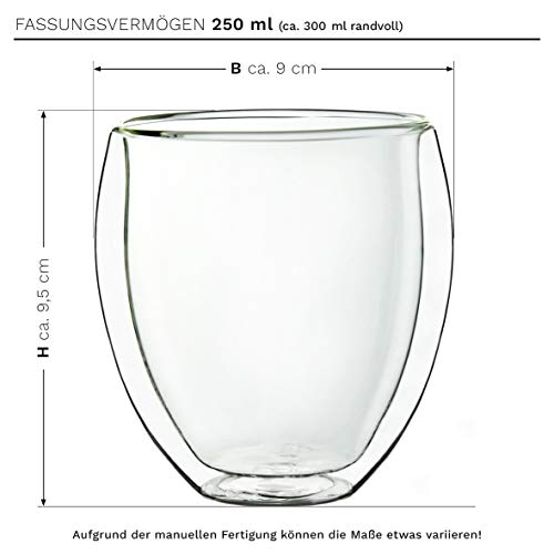 Creano doppelwandige Gläser 250ml âDG-Bauchigâ, 6er Set, groÃes Thermoglas doppelwandig aus Borosilikatglas, Kaffeegläser, Teegläser, Latte Gläser, Doppelwandgläser