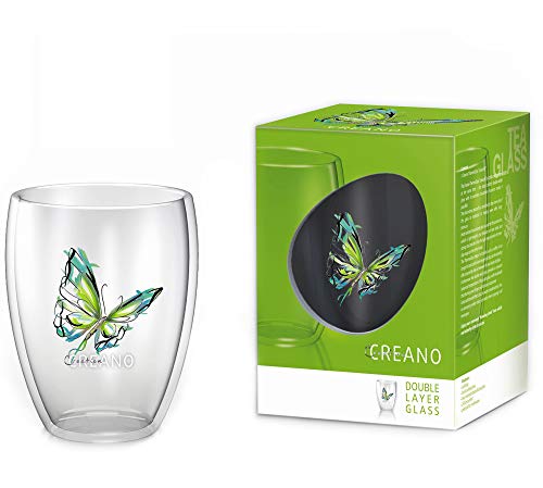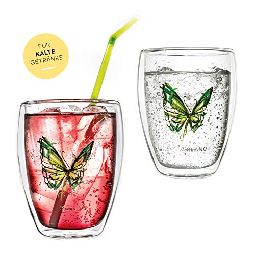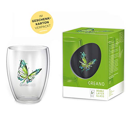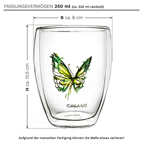 Creano doppelwandiges Tee-Glas, Latte Macchiato, Thermobecher Schmetterling | 250ml in exklusiver Geschenkbox (Grün)