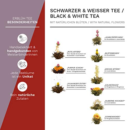 Creano Teeblumen Geschenkset in Teekiste aus Holz 12 Erblühtee in 9 Sorten WeiÃtee & Schwarztee, Geschenk für Frauen, Mutter, Teeliebhaber