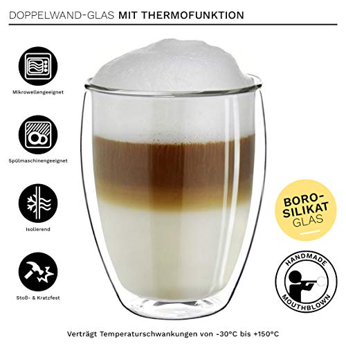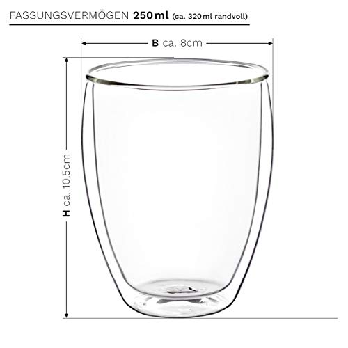 Creano doppelwandige Gläser 250ml – Glas Becher doppelwandig – Thermoglas – Cappuccinotassen – Doppelwandgläser im 4er Set