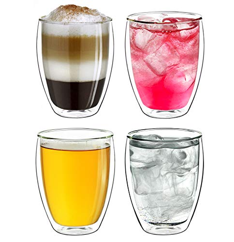 ANGEBOT: 4x 250ml doppelwandige Teegläser bzw. Kaffeegläser leer hochwertigem Borosilikatglas, welches heiße Getränke länger warm und kalte Getränke länger kalt hält. Zudem sorgt das Doppelwandglas für ein stets gleichmäßig temperiertes Außenglas, sodass vulgo ein mögliches Ausbrennen der Finger der Vergangenheit angehört.