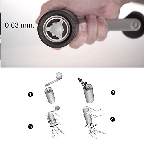 Perfekte Option statt dessen zu Hause, wo keine große, laute Kaffeemühle stehen soll. Diese leichte Kaffeemühle nimmt daher wenig Platz in der Schublade ein und macht keine Geräusche, wenn Sie sich eine frische Tasse Kaffee mahlen