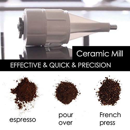 Keramikarbeiten: Die Keramikarbeiten sorgen dafür, dass der Kaffee bei niedrigen Temperaturen gemahlen wird, wobei die Öle und der gute Geschmack der Bohnen so einverstanden qua etwaig erhalten bleiben.